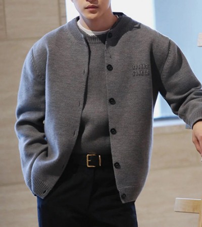 [홍콩명품,MIU MIU] 미우미우 24SS 로고 자수 라운드넥 니트 가디건 (그레이), BM16608, KB, 홍콩명품의류,구매대행,온라인명품 > 남자의류