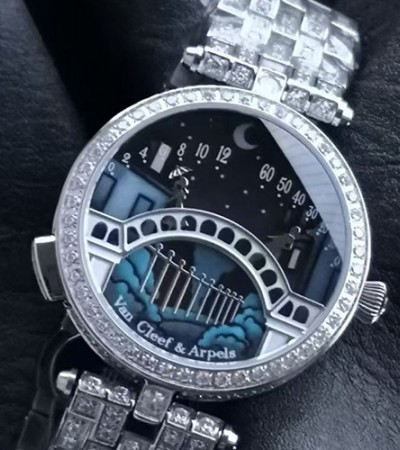 • [홍콩명품.VANCLEEF&ARPELS] 반클리프아펠 이디 다이아워치 화이트골드 블랙 다이얼 38MM 다이아시계, 쿼츠시계