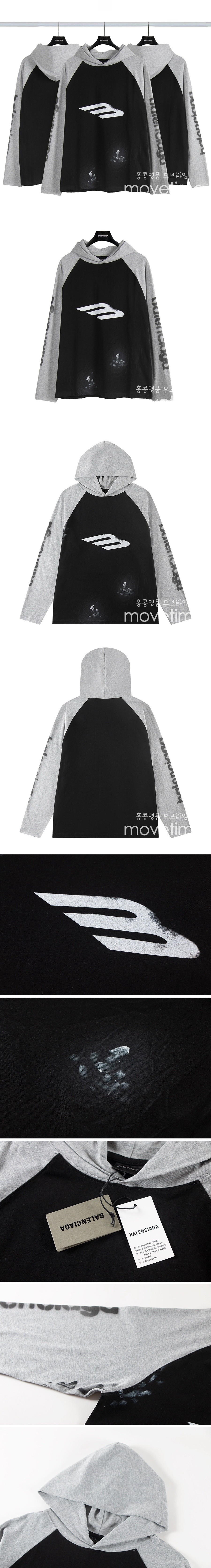 • [홍콩명품.BALENCIAGA] 발렌시아가 24SS 스포티로고 프린트 후드 티셔츠 (블랙-그레이), BM16623, JU, 홍콩명품의류,구매대행,온라인명품