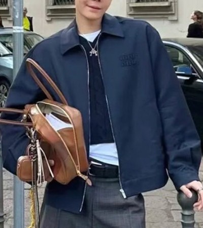 [홍콩명품,MIU MIU] 미우미우 24SS 로고 스터디 장식 카라 자켓 (네이비), BM16639, KB, 홍콩명품의류,구매대행,온라인명품 > 남자의류