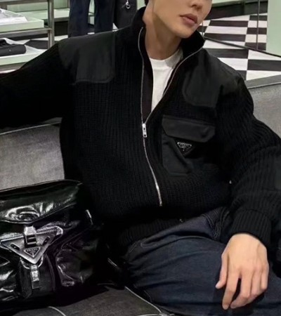 [홍콩명품,PRADA] 프라다 24SS 삼각로고 나일론 포켓 니트 집업 자켓 (블랙), BM16722, KB, 홍콩명품의류,구매대행,온라인명품 > 남자의류