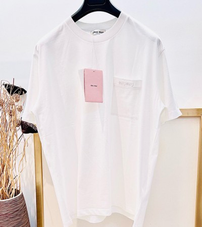 [홍콩명품,MIU MIU] 미우미우 24SS 로고 자수 반팔 티셔츠 (2컬러), BM16774, YS, 홍콩명품의류,구매대행,온라인명품 요약정보 및 구매