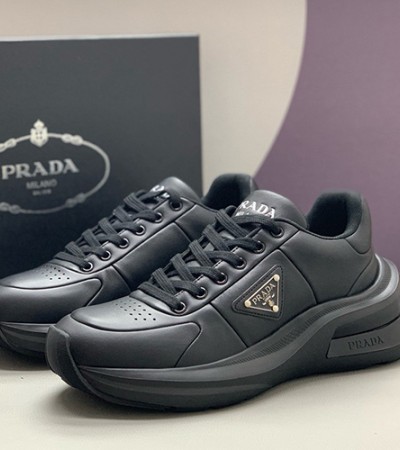 • [홍콩명품,PRADA] 프라다 24SS 삼각로고 레더 가죽 스니커즈 운동화 (블랙), SE4217, PMD, 명품스니커즈,운동화,구두,로퍼,하이탑,신발