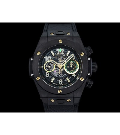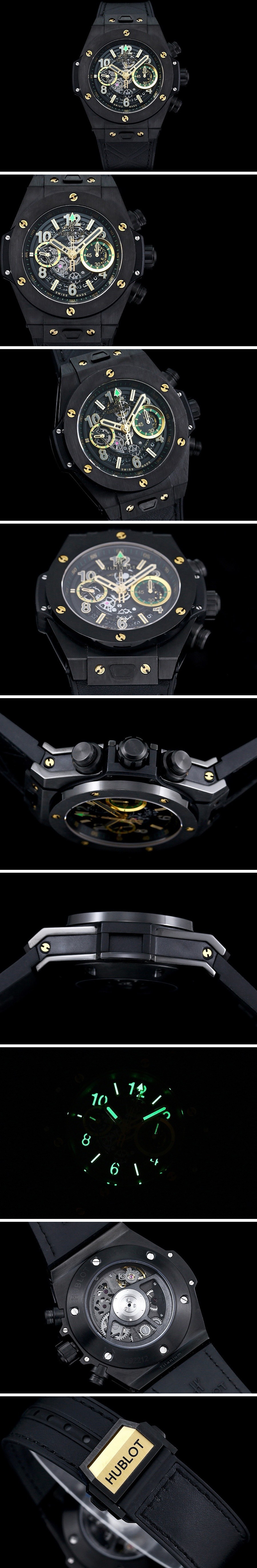 • [홍콩명품시계.HUBLOT] 휴블럿 빅뱅 블랙 에어로뱅 크로노 스틸 시계, 블랙 스켈레톤 다이얼
