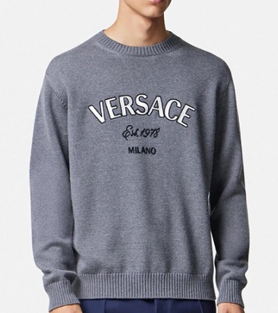 [홍콩명품.VERSACE] 베르사체 24SS 로고 그래픽 자수 니트 스웨터 (그레이), BM16902, TOP, 홍콩명품의류,구매대행,온라인명품 요약정보 및 구매