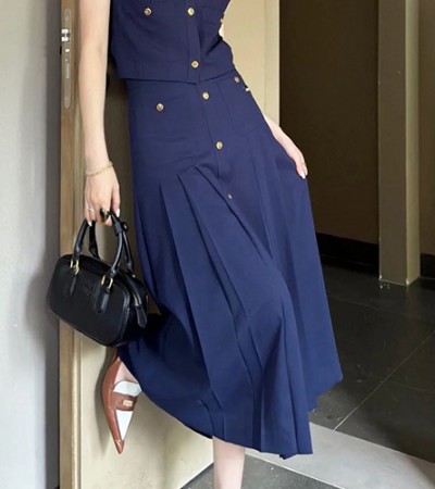 • [홍콩명품,MIU MIU] 미우미우 24SS 로고 여성 미디 스커트 (네이비), BM16984, TBG, 홍콩명품의류,구매대행,온라인명품