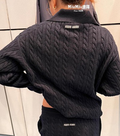 [홍콩명품,MIU MIU] 미우미우 24SS 로고 여성 카라 니트 스웨터 (블랙), BM16989, TBG, 홍콩명품의류,구매대행,온라인명품 요약정보 및 구매