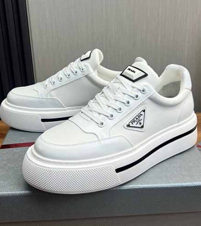 • [홍콩명품,PRADA] 프라다 24SS 삼각로고 레더 가죽 레이어드 스니커즈 운동화 (화이트), SE4235, S3, 명품스니커즈,운동화,구두,로퍼,하이탑,신발