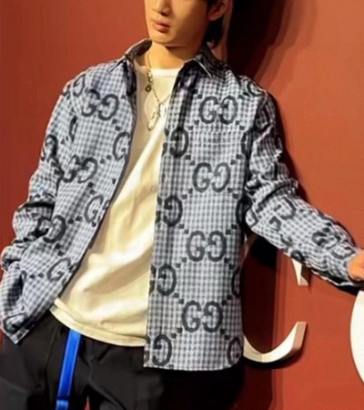[홍콩명품.Gucci] 구찌 24SS 로고 GG수프림 울 남방 셔츠 (블루), BM17116, JU, 홍콩명품의류,구매대행,온라인명품 > 남자의류