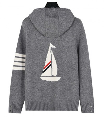 [홍콩명품.THOME BROWNE] 톰브라운 24SS 로고 4바 후드 니트 가디건 자켓 (그레이), BM17176, JU, 홍콩명품의류,구매대행,온라인명품 요약정보 및 구매