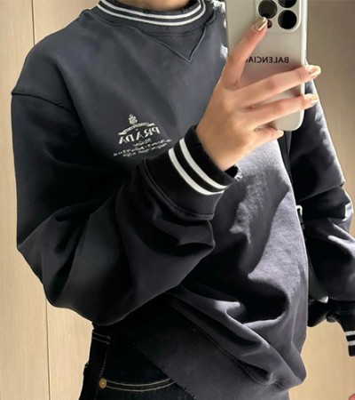 [홍콩명품,PRADA] 프라다 24SS 로고 프린트 빈티지 맨투맨 티셔츠 (네이비), BM17347, JL, 홍콩명품의류,구매대행,온라인명품 요약정보 및 구매