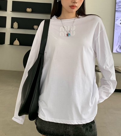 [홍콩명품,MIU MIU] 미우미우 24SS 로고 자수 여성 긴팔 티셔츠 (화이트), BM17403, TBG, 홍콩명품의류,구매대행,온라인명품 > 여성몰