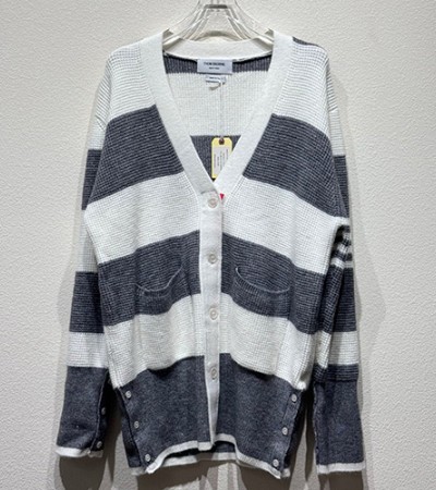 • [홍콩명품.THOME BROWNE] 톰브라운 24SS 로고 여성 V넥 스트라이프 니트 가디건 (화이트-그레이), BM17477, KB, 홍콩명품의류,구매대행,온라인명품