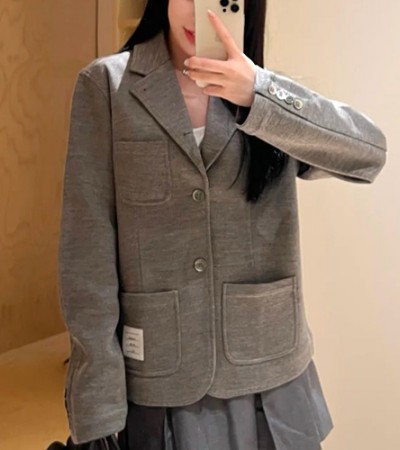 [홍콩명품.THOME BROWNE] 톰브라운 24SS 로고 여성 정장 자켓 (그레이), BM17478, KB, 홍콩명품의류,구매대행,온라인명품 > 여성몰