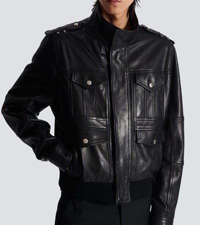 • [홍콩명품.BALMAIN] 발망 24SS 로고 터틀넥 레더 가죽 봄버 자켓 (블랙), BM17553, TOM, 홍콩명품의류,구매대행,온라인명품