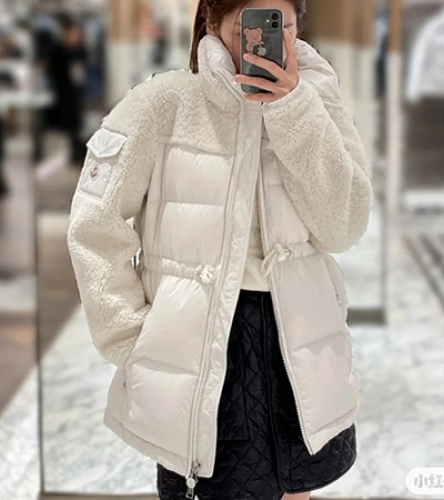 • [홍콩명품.MONCLER] 몽클레어 24SS 로고 여성 플리스 구스다운 레이어드 패딩 자켓 (아이보리), BM17658, PG, 홍콩명품의류,구매대행,온라인명품