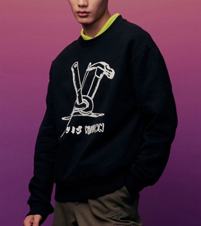 [홍콩명품.LOUIS VUITTON] 루이비통 24SS 로고 LV 그래픽 프린트 맨투맨 티셔츠 (블랙), BM17718, JL, 홍콩명품의류,구매대행,온라인명품 > 남자의류