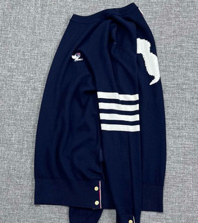 • [홍콩명품.THOME BROWNE] 톰브라운 24SS 로고 헥터 4바 니트 스웨터 (네이비), BM17826, JQ, 홍콩명품의류,구매대행,온라인명품