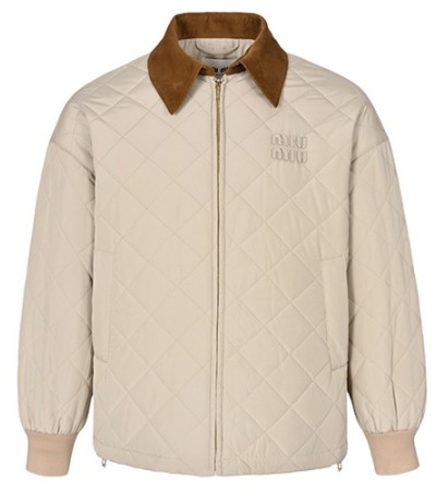 [홍콩명품,MIU MIU] 미우미우 23SS 로고 퀄팅 카라 솜패딩 자켓 (베이지), BM17849, S1F, 홍콩명품의류,구매대행,온라인명품 요약정보 및 구매
