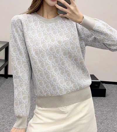 • [홍콩명품,Christian Dior] 디올 24SS 로고 여성 오블리크 니트 스웨터 (그레이), BM17899, TBG, 홍콩명품의류,구매대행,온라인명품