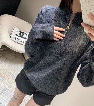 • [홍콩명품.LOUIS VUITTON] 루이비통 24SS 로고 여성 하프지퍼 니트 스웨터 (그레이), BM17906, TBG, 홍콩명품의류,구매대행,온라인명품