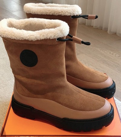 • [홍콩명품.Hermes] 에르메스 24SS 로고 남여 레더 가죽 양털 부츠 (브라운), SE4318, S3, 명품스니커즈,운동화,구두,로퍼,하이탑,신발