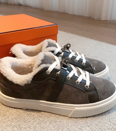 [홍콩명품.Hermes] 에르메스 24SS 로고 남여 레더 가죽 양털 운동화 (다크그레이), SE4320, S3, 명품스니커즈,운동화,구두,로퍼,하이탑,신발 > 신발