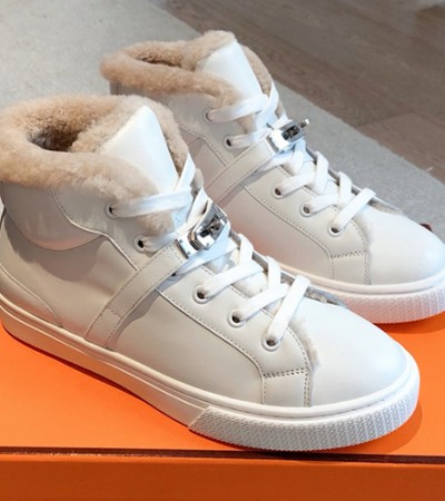 [홍콩명품.Hermes] 에르메스 24SS 로고 남여 레더 가죽 양털 하이탑 운동화 (화이트), SE4328, S3, 명품스니커즈,운동화,구두,로퍼,하이탑,신발 > 신발