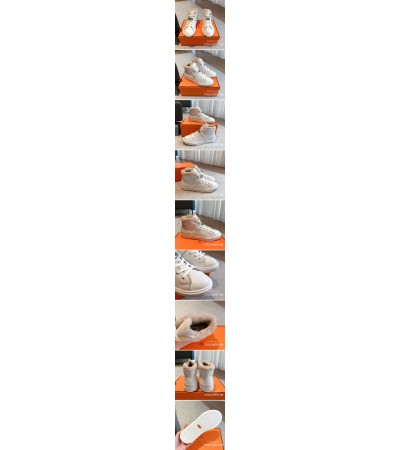• [홍콩명품.Hermes] 에르메스 24SS 로고 남여 레더 가죽 양털 하이탑 운동화 (화이트), SE4328, S3, 명품스니커즈,운동화,구두,로퍼,하이탑,신발