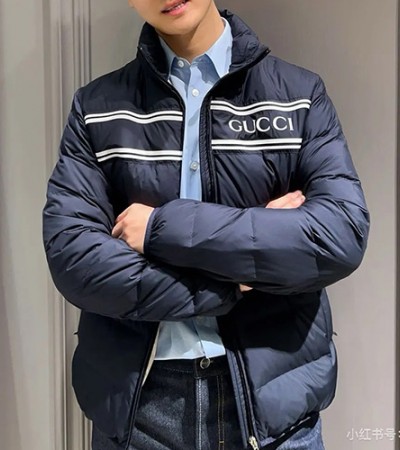 • [홍콩명품.Gucci] 구찌 24SS 로고 스트라이프 다운 패딩 자켓 (네이비), BM17992, KB, 홍콩명품의류,구매대행,온라인명품