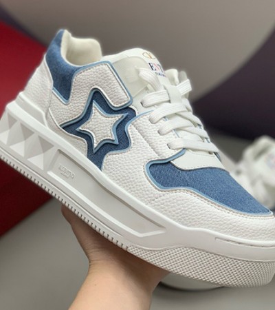• [홍콩명품.Valentino] 발렌티노 24SS 로고 남여 레더 가죽 스니커즈 운동화 (화이트-블루), SE4366, PMD, 명품스니커즈,운동화,구두,로퍼,하이탑,신발