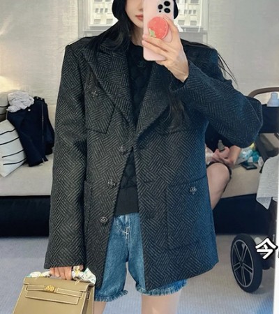• [홍콩명품.CHANEL] 샤넬 24SS 로고 패턴 여성 울 캐시미어 정장 자켓 (블랙), BM18041, PG, 홍콩명품의류,구매대행,온라인명품