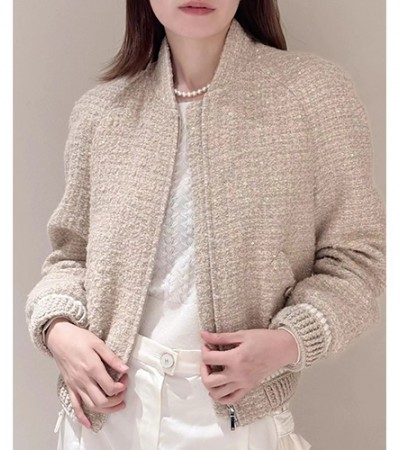 • [홍콩명품.CHANEL] 샤넬 24SS 로고 여성 트위드 봄버 자켓 (핑크), BM18042, PG, 홍콩명품의류,구매대행,온라인명품