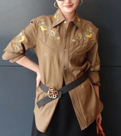 • [홍콩명품.LOUIS VUITTON] 루이비통 25SS 로고 플라워 자수 남방 셔츠 (브라운), BM18134, JU, 홍콩명품의류,구매대행,온라인명품