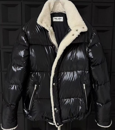 [홍콩명품.YSL] 입생로랑 25SS 로고 시어링 덕다운 패딩 자켓 (블랙), BM18275, X2, 홍콩명품의류,구매대행,온라인명품 > 남자의류