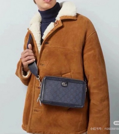 • [홍콩명품.Gucci] 구찌 25SS 로고 시어링 레더 가죽 자켓 (브라운), BM18279, TOM, 홍콩명품의류,구매대행,온라인명품