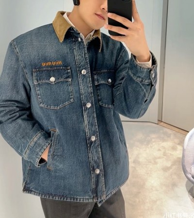 [홍콩명품,MIU MIU] 미우미우 25SS 로고 카라 데님 자켓, BM18295, JU, 홍콩명품의류,구매대행,온라인명품 > 남자의류