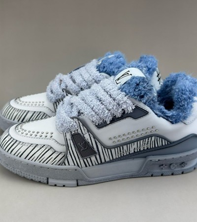 • [홍콩명품.LOUIS VUITTON] 루이비통 25SS 로고 남여 모노그램 트레이너 겨울용 캐시미어 스니커즈 운동화 (그레이), SE4423, S3, 명품스니커즈,운동화,구두,로퍼,하이탑,신발