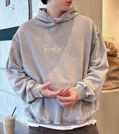 • [홍콩명품.GIVENCHY] 지방시 25SS 로고 그래픽 프린트 워싱 후드 티셔츠 (그레이), BM18484, HH, 홍콩명품의류,구매대행,온라인명품