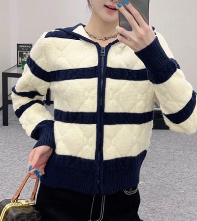 • [홍콩명품,Christian Dior] 디올 25SS 로고 여성 스트라이프 캐시미어 니트 후드 집업 자켓 (아이보리), BM18495, TBG, 홍콩명품의류,구매대행,온라인명품