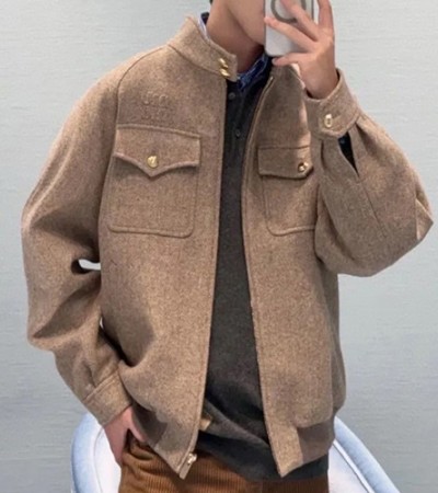 [홍콩명품,MIU MIU] 미우미우 25SS 로고 울 봄버 자켓 (브라운), BM18539, KB, 홍콩명품의류,구매대행,온라인명품 > 남자의류