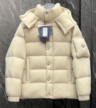 [홍콩명품,PRADA] 프라다 25SS 삼각로고 후드 구스다운 패딩 자켓 (아이보리), BM18610, KSM, 홍콩명품의류,구매대행,온라인명품 > 남자의류