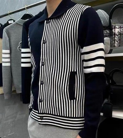 • [홍콩명품.THOME BROWNE] 톰브라운 25SS 로고 3선 니트 후드 버튼 자켓 (2컬러), BM18660, TB1, 홍콩명품의류,구매대행,온라인명품