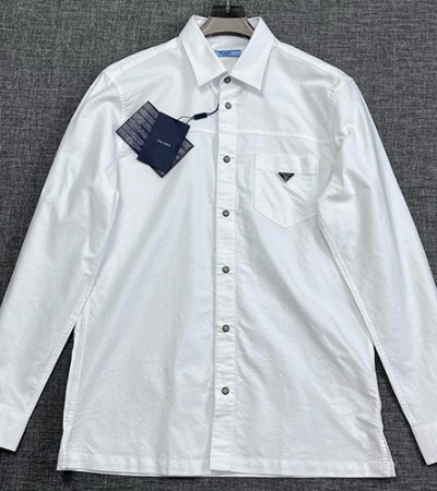 [홍콩명품,PRADA] 프라다 25SS 삼각로고 남방 셔츠 (화이트), BM18679, JQ, 홍콩명품의류,구매대행,온라인명품 > 남자의류