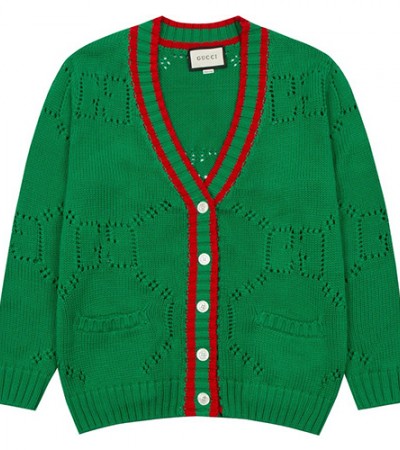 • [홍콩명품.Gucci] 구찌 25SS 로고 V넥 니트 가디건 (그린), BM18723, JU, 홍콩명품의류,구매대행,온라인명품