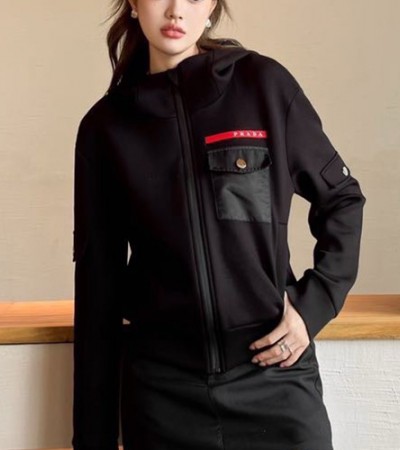 [홍콩명품,PRADA] 프라다 25SS 로고 여성 후드 집업 자켓 (블랙), BM18760, TBG, 홍콩명품의류,구매대행,온라인명품 > 여성몰
