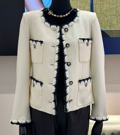 • [홍콩명품.CHANEL] 샤넬 25SS 로고 여성 라운드넥 트위드 자켓 (아이보리), BM18774, TBG, 홍콩명품의류,구매대행,온라인명품