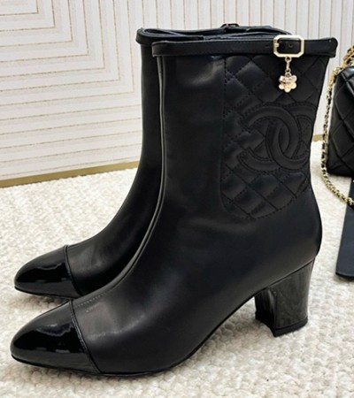 • [홍콩명품.CHANEL] 샤넬 25SS 로고 여성 레더 가죽 힐 부츠 (블랙), SE4534, ALW, 명품스니커즈,운동화,구두,로퍼,하이탑,신발