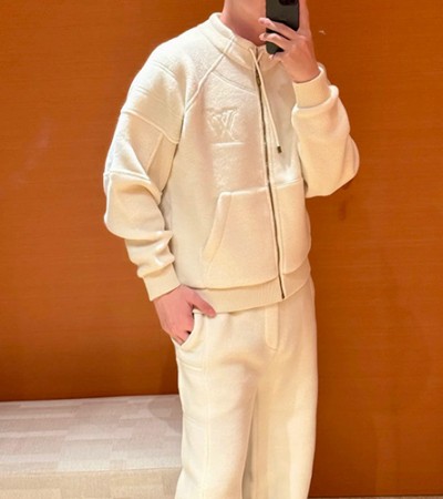 [홍콩명품.LOUIS VUITTON] 루이비통 25SS 로고 자수 기모 후드 집업 자켓 + 조거 팬츠 바지 상하의 세트 (아이보리), BM18856, JU, 홍콩명품의류,구매대행,온라인명품 > 남자의류