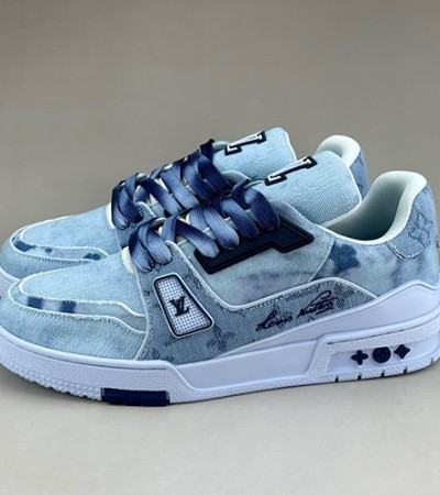 [홍콩명품.LOUIS VUITTON] 루이비통 25SS 로고 모노그램 데님 트레이너 스니커즈 운동화 (스카이블루), SE4575, S3, 명품스니커즈,운동화,구두,로퍼,하이탑,신발 > 신발
